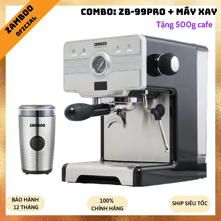 Combo máy pha cà phê Espresso Zamboo ZB-99PRO + máy xay ZB100g - hàng chính hãng