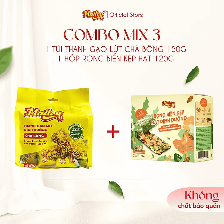 [COMBO MIX 3]Rong biển kẹp hạt dinh dưỡng 120g + Thanh gạo lứt chà bông/rong biển mix hạt 150g Mailey