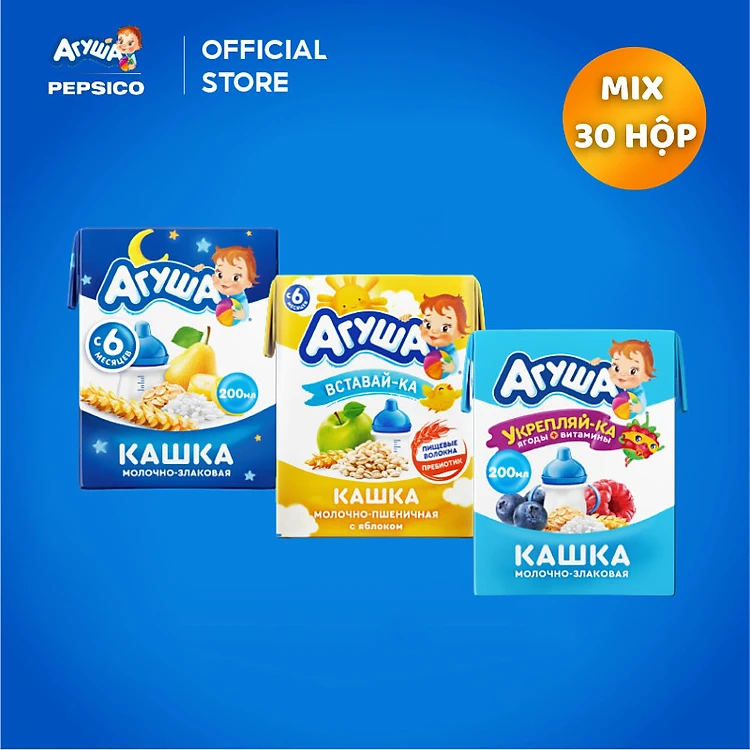 Combo mix vị 30 hộp Sữa ăn dặm tăng cân Agusha cho bé 200ml/hộp