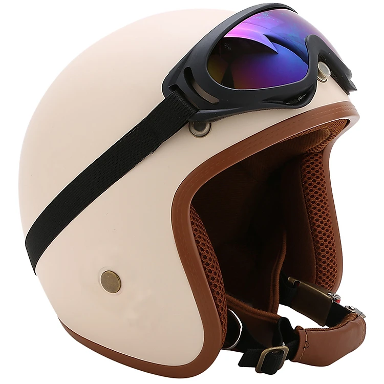 Combo Mũ Bảo Hiểm 3/4 Đầu SRT Kem nâu Kèm Kính UV400 - Nón Bảo Hiểm Phượt SRT Mẫu Mới: