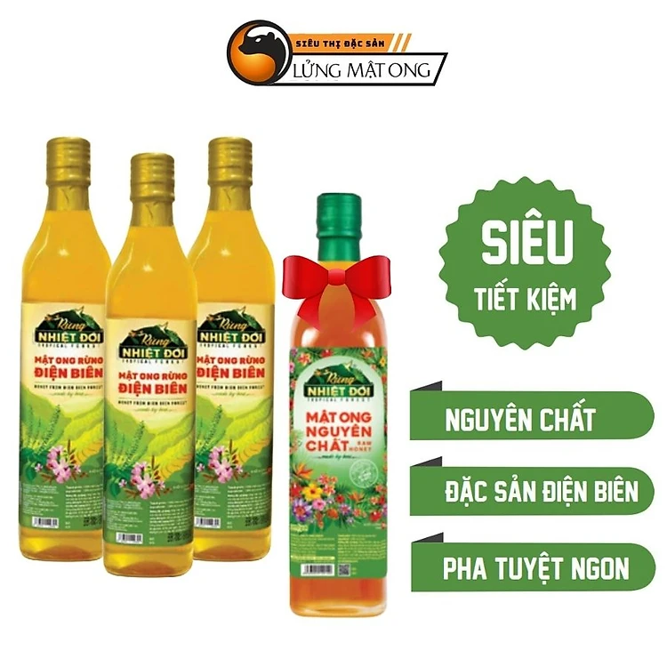 Combo Mua 3 chai Mật ong nguyên chất Rừng Điện Biên 720g tặng 1 chai Mật ong nguyên chất Rừng Nhiệt Đới 700g