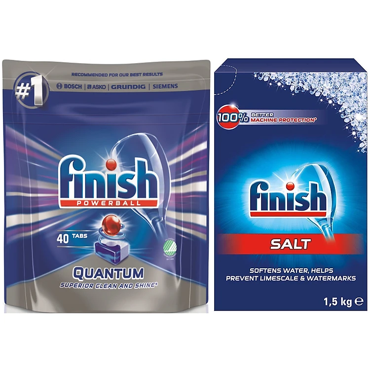 Combo Muối rửa bát Finish 1.5kg + Viên rửa bát Finish Quantum 40 viên