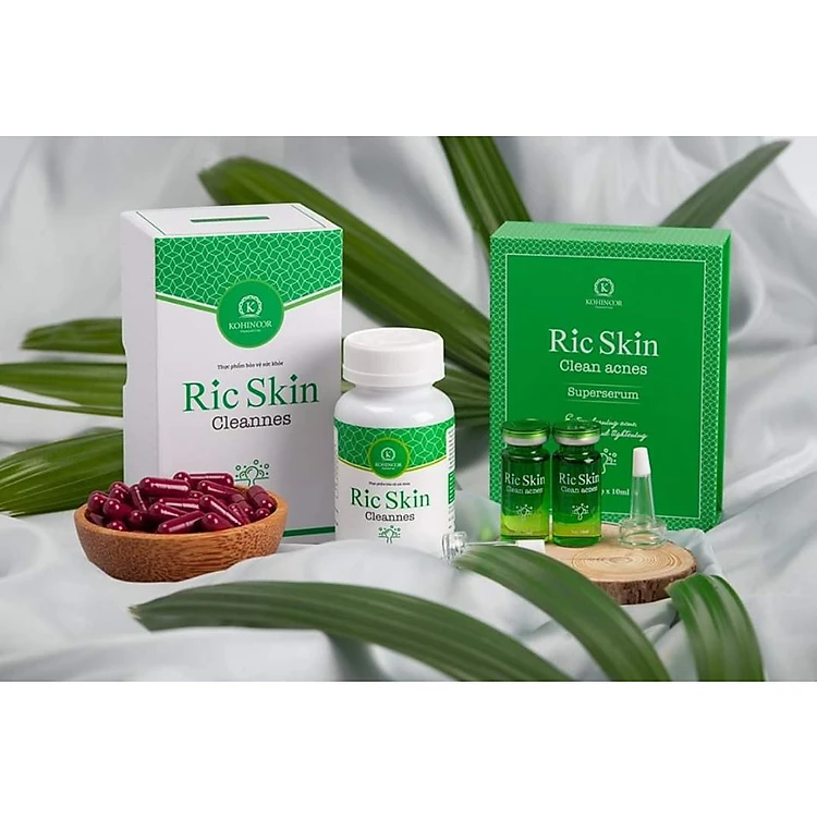 Combo ngừa mụn : Viên Uống Ric Skin Cleannes và Supper Serum Ric Skin Clear Accnes