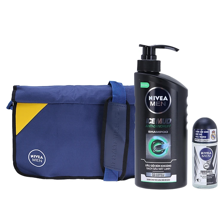 - Combo Nivea: Dầu Gội Bùn Khoáng Sạch Gàu Mát Lạnh Nivea Men 9530ml) - 82770 + Lăn Ngăn Mùi Nivea Men Black & White (50ml) - 82245 - Dầu gội với công thức chứa khoáng chất từ bùn kết hợp với bạc hà và tinh chất trà làm sạch mạnh mẽ, loại bỏ bụi bẩn, bã nhờn bám sâu trên da đầu. Lăn ngăn mùi giúp giảm tiết mồ hồi và khử mùi hiệu quả suốt 48 giờ.