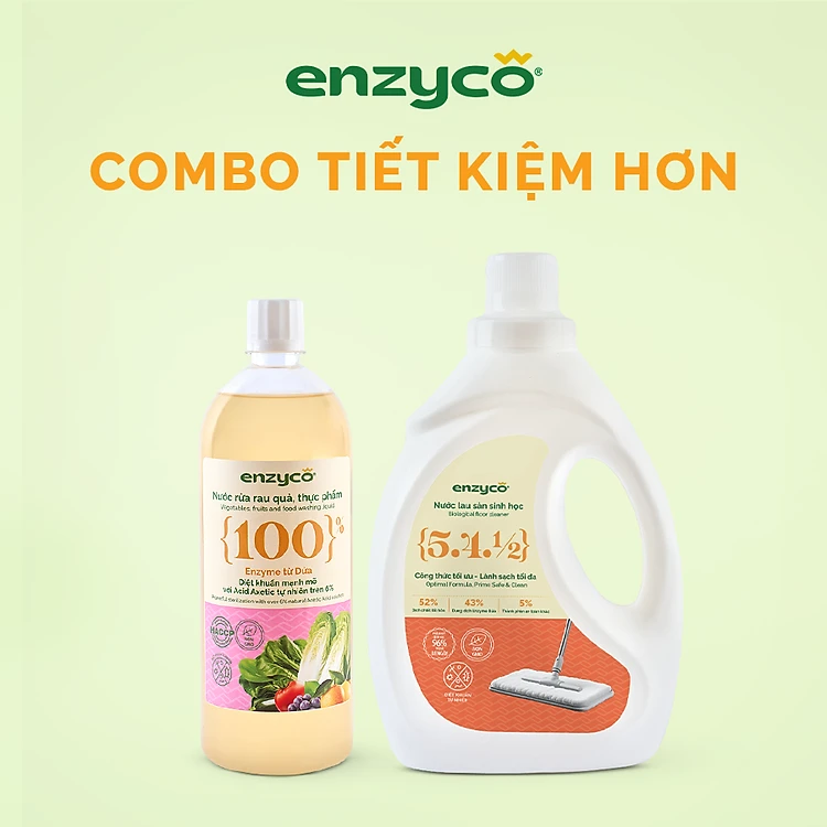 Combo Nước Lau Sàn 2L Và Nước Ngâm Rau Củ 1L ENZYCO