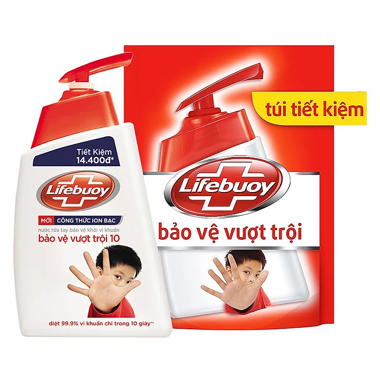 Combo Nước Rửa Tay Lifebuoy Bảo Vệ Vượt Trội Chai 500g + Túi 450g - Với tinh chất activ 5 và tinh chất sữa, giúp diệt 99.9% vi khuẩn chỉ trong 10 giây, trả lại cho bạn làn da sạch khỏe. Thường xuyên rửa tay với xà phòng giúp phòng ngừa các bệnh về tiêu hóa.