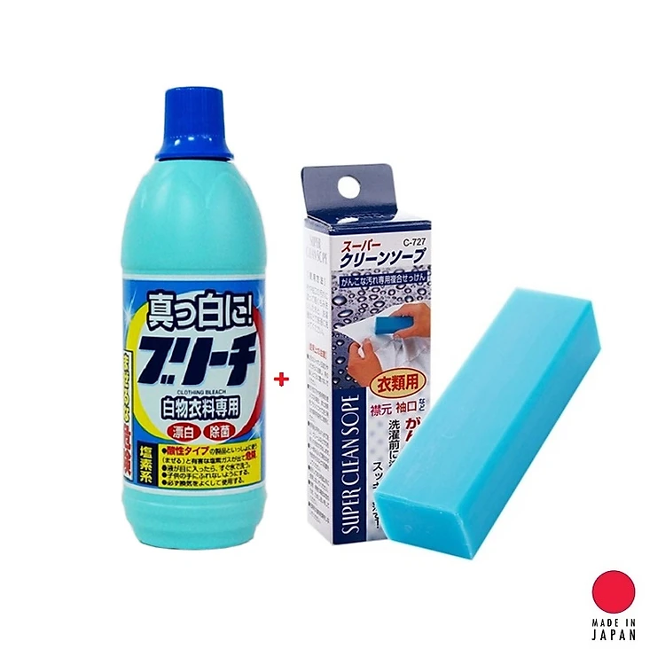 Combo Nước Tẩy Quần Áo Rocket (600ml) + Thanh Xà phòng Giặt Cổ Áo, Tay Áo hàng nội Địa Nhật Bản
