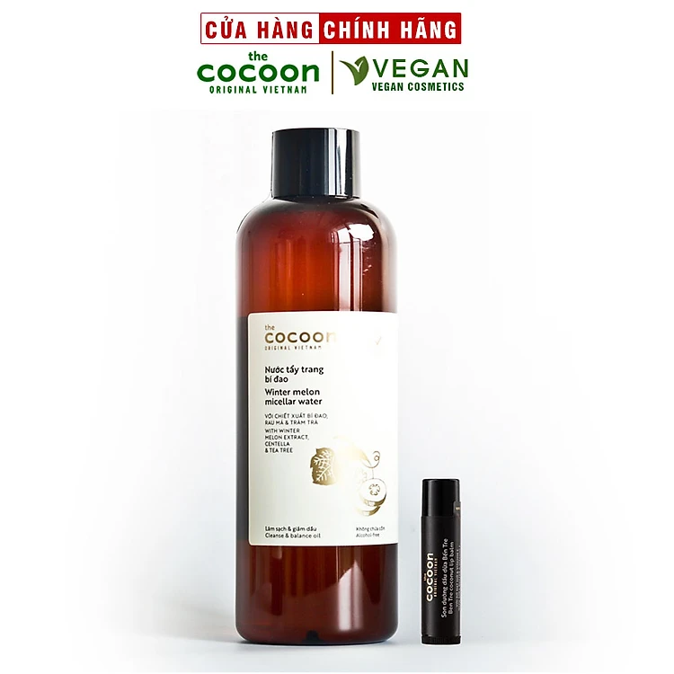 Combo Nước tẩy trang bí đao cocoon 500ml + Son dưỡng môi dầu dừa bến tre cocoon 5g