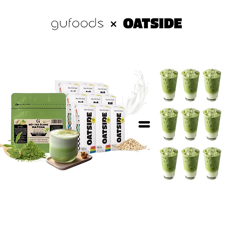 Combo pha chế Matcha latte từ OATSIDE - Pha được 9 ly thành phẩm - Gồm 9 Hộp OATSIDE 180ml + Gói 50g Bột Matcha trà Ôlong GUfoods