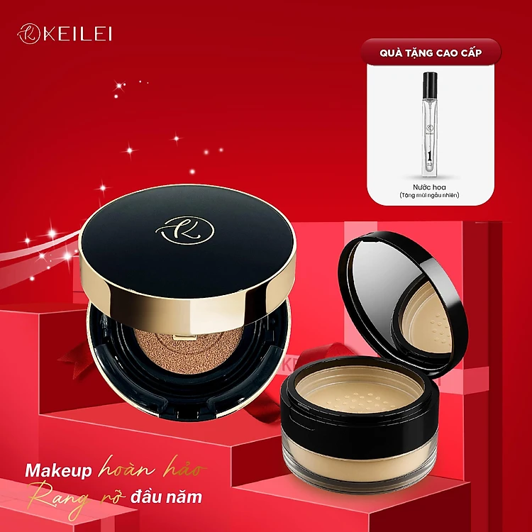 COMBO Phấn phủ kiềm dầu hoàn hảo KEILEI + Phấn nước đa năng 3 trong 1 KEILEI - 3 in 1 Radiance Cushion KEILEI