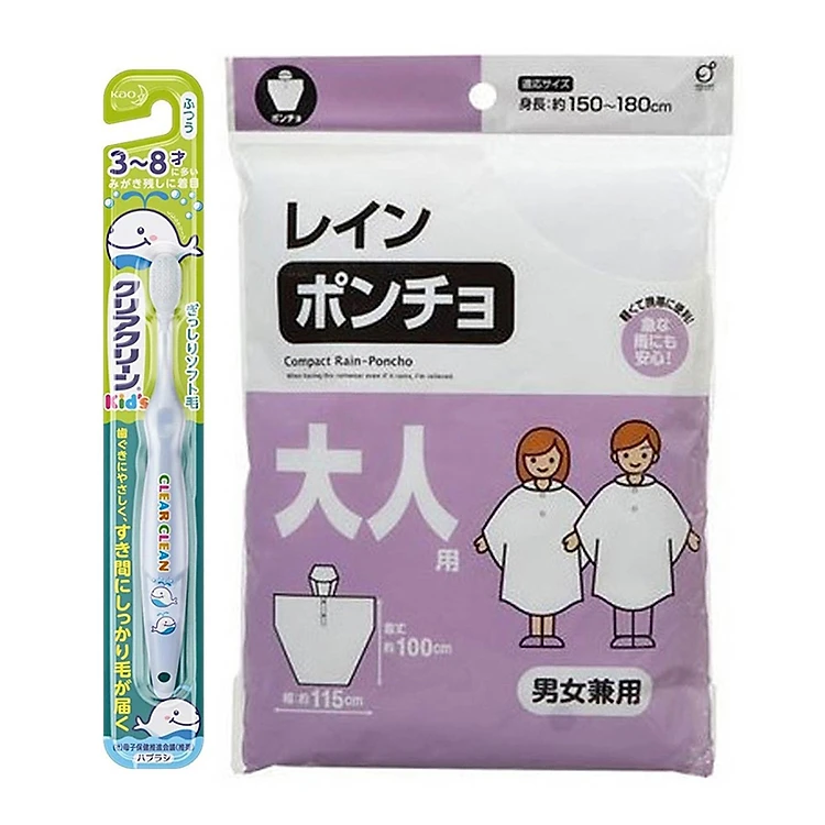 Combo phụ kiện dã ngoại cho bé: Áo mưa + bàn chải đánh răng (3-8 tuổi) - Hàng nội địa Nhật
