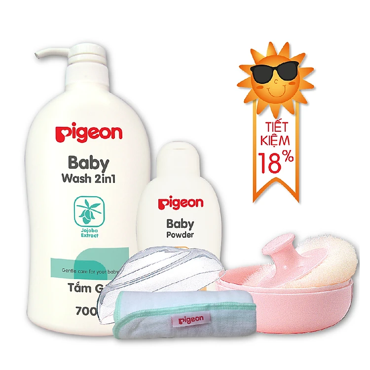 Combo Pigeon 5 (Chăm Sóc Và Vệ Sinh Cho Bé) - MP20014PL19 cung ứng các sản phẩm chăm sóc vệ sinh và sức khỏe cho bé như: sữa tắm gội 2in1 Jojoba Extract 700ml, hộp và bông thoa phấn màu hồng. Đi kèm với combo là những sản phẩm tiện ích: phấn thơm em bé 200g và khăn sữa em bé. Bộ sản phẩm là người bạn đồng hành lý tưởng giúp ba mẹ chăm sóc bé toàn diện và hoàn hảo hơn.