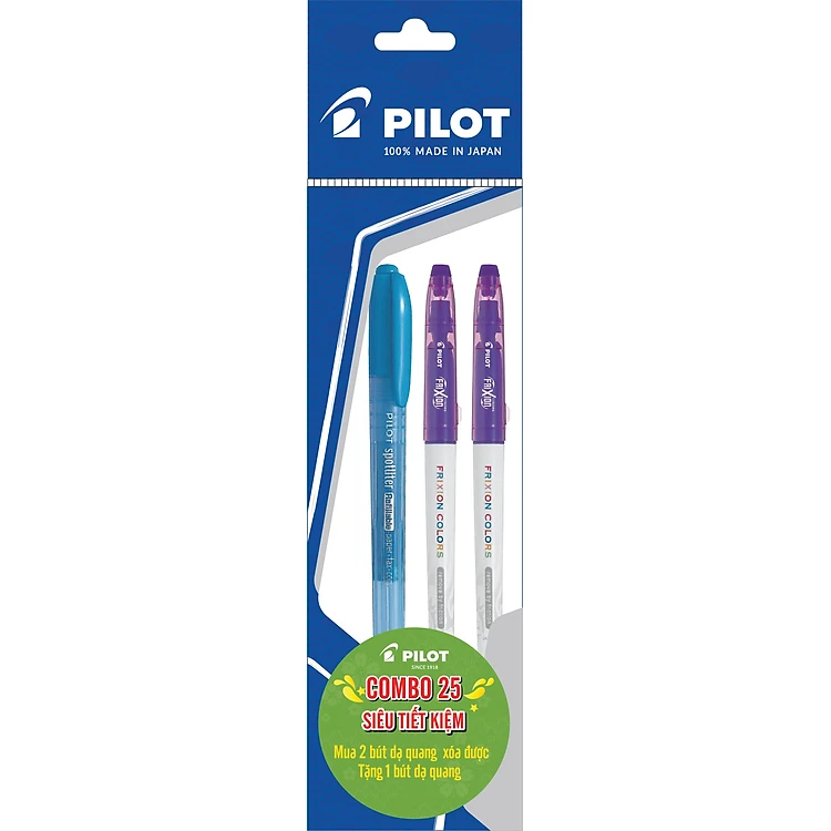 Combo Pilot 25: 2 Bút Dạ Quang Xóa Được Frixion Colors Màu Tím + 1 Bút Dạ Quang Spotliter Xanh Dương