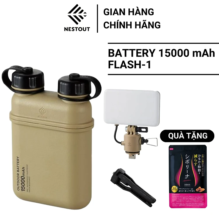 COMBO Pin Dự Phòng 15000 mAh Và Đèn LED Dã Ngoại 12W NESTOUT - Hàng Chính Hãng - ELECOM OFFICIAL SHOP
