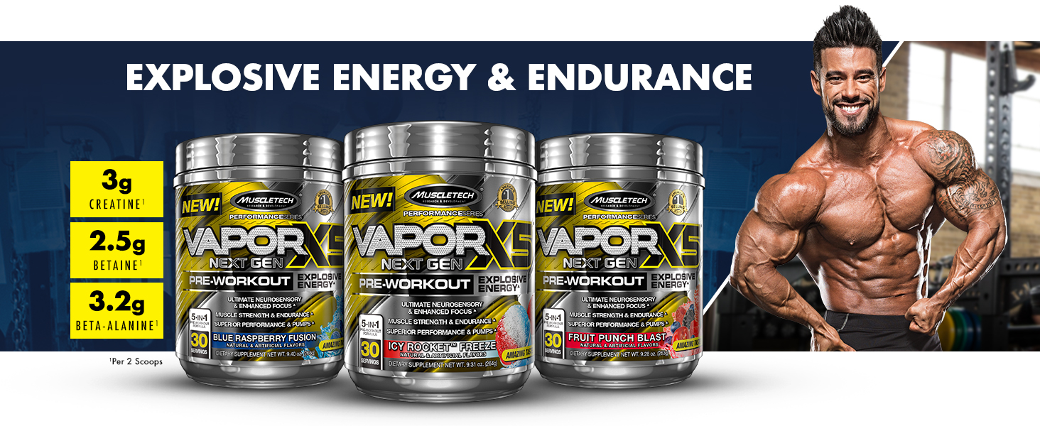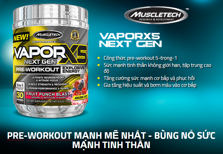 Combo Pre-Workout Vapor X5 của MuscleTech hương Blue Razz Freeze hộp 30 lần dùng hỗ trợ Tăng Sức Bền, Sức Mạnh, Đốt Mỡ, Giảm Cân mạnh mẽ cho người tập GYM & Bình INOX 739ML (mẫu ngẫu nhiên)