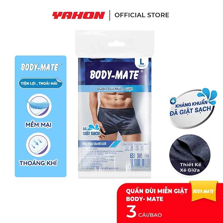 [Tặng 2 Khăn Ướt Cồn] Bao Quần Đùi Tiện Lợi BODY-MATE Nam (Bao 3 Cái) | Quần Đã Giặt Sạch, Mềm Mại, Thoáng Khí