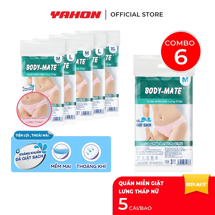 [Tặng 2 Khăn Ướt Cồn/Bao] Bao Quần Lót Lưng Thấp Body-Mate Nữ | Đã Giặt Sạch, Đóng Gói Tự Động, An Toàn Tiện Lợi | 5 Cái/Bao