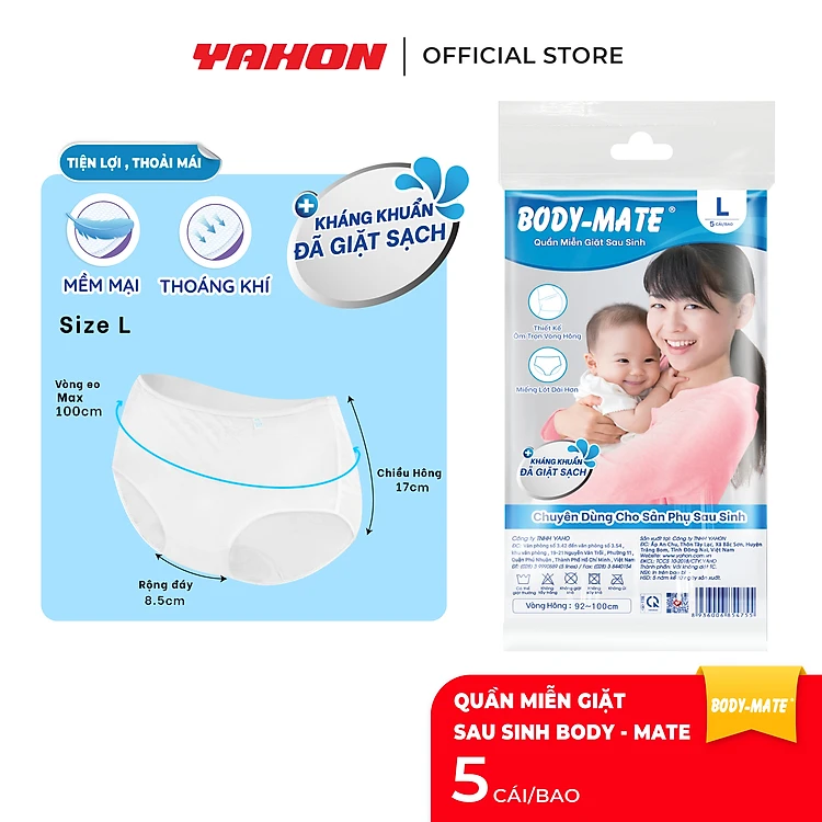 [Tặng 2 Khăn Ướt Cồn/Bao] Combo Bao Quần Lót Sau Sinh BODY-MATE Nữ, 5 Cái/Bao | Đã Giặt Sạch, Tiện Lợi, Thoáng Khí