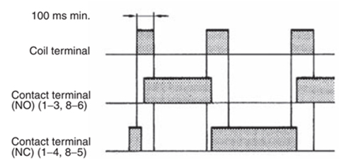 Độ bền cách điện: Chịu được 2000 VAC, 50/60 Hz trong 1 phút giữa cuộn dây và tiếp điểm