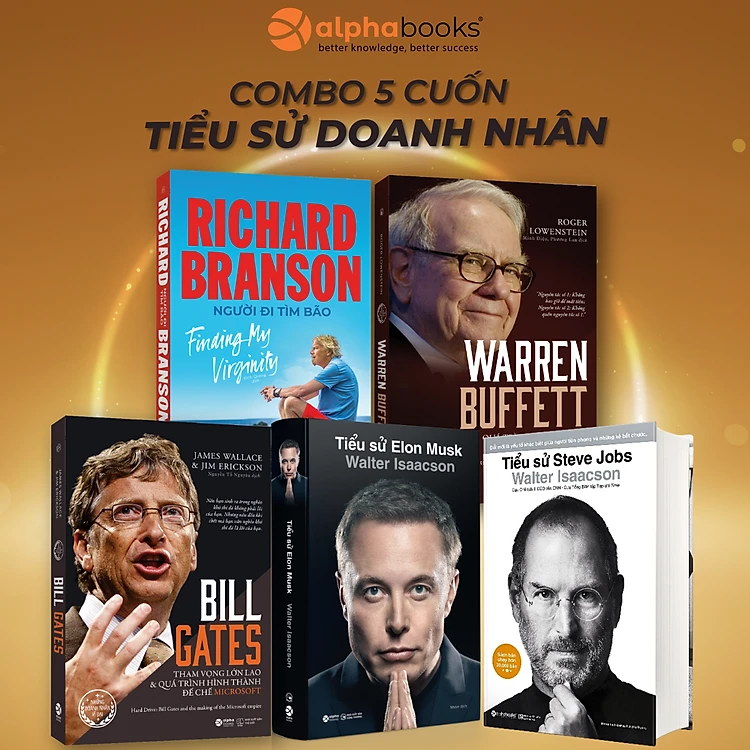Combo Sách Tiểu Sử Doanh Nhân: Tiểu Sử Elon Musk + Tiểu Sử Steve Jobs + Tiểu Sử Bill Gates + Richard Branson - Người Đi Tìm Bão + Warren Buffett - Quá Trình Hình Thành Một Nhà Tư Bản Mỹ