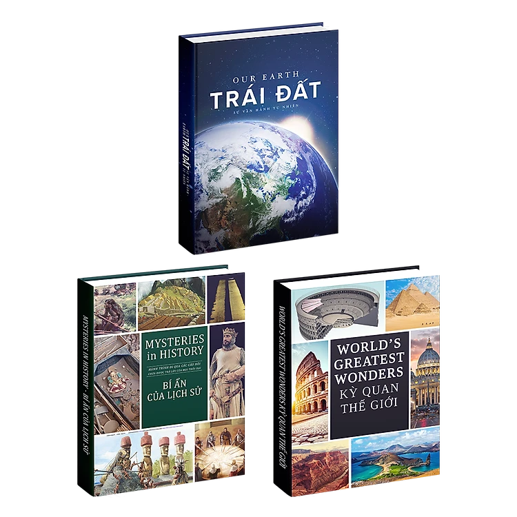 Combo sách Trái đất, Bách khoa toàn thư lịch sử ( tập 1, tập 2 ), bộ 3 cuốn tổng hợp kiến thức khoa học, lịch sử - Á Châu Books, bìa cứng in màu