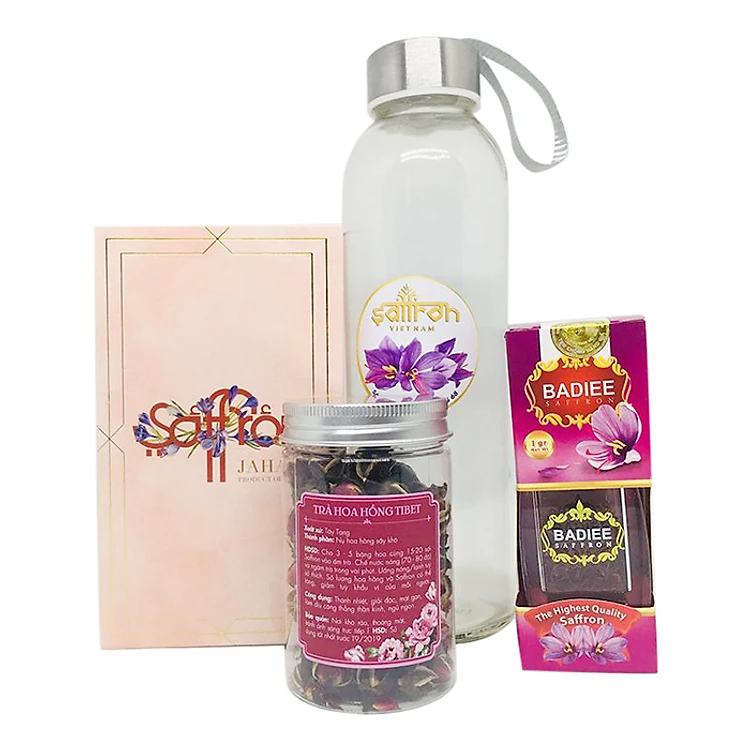 - Combo Saffron Jahan Gazelle (1g) + Saffron Badiee (1g) - Tặng 1 Hộp Hoa Hồng Và 1 Bình Nước Là dòng Saffron phổ thông, phù hơp với những người muốn dùng thử và ưa thích giá tốt
