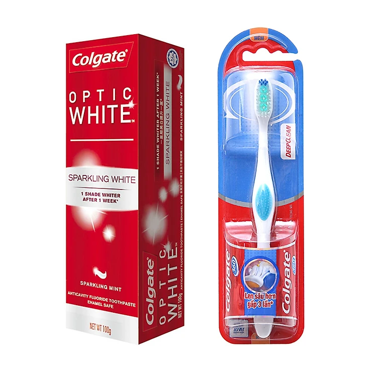 Combo Sản Phẩm Kem Đánh Răng Colgate Optic White Làm Trắng Răng 100g + Bàn Chải 360 Đánh Răng Sạch Sâu Deep Clean