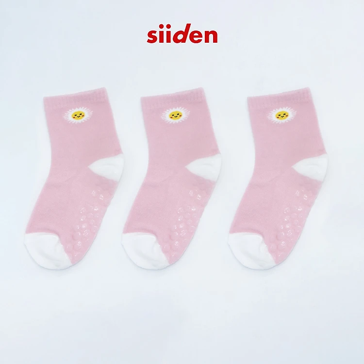 Combo/set 3 đôi tất bé gái dễ thương màu hồng, vớ trẻ em cotton mềm mịn, hình hoa, có đệm cao su chống trượt – E2CP102