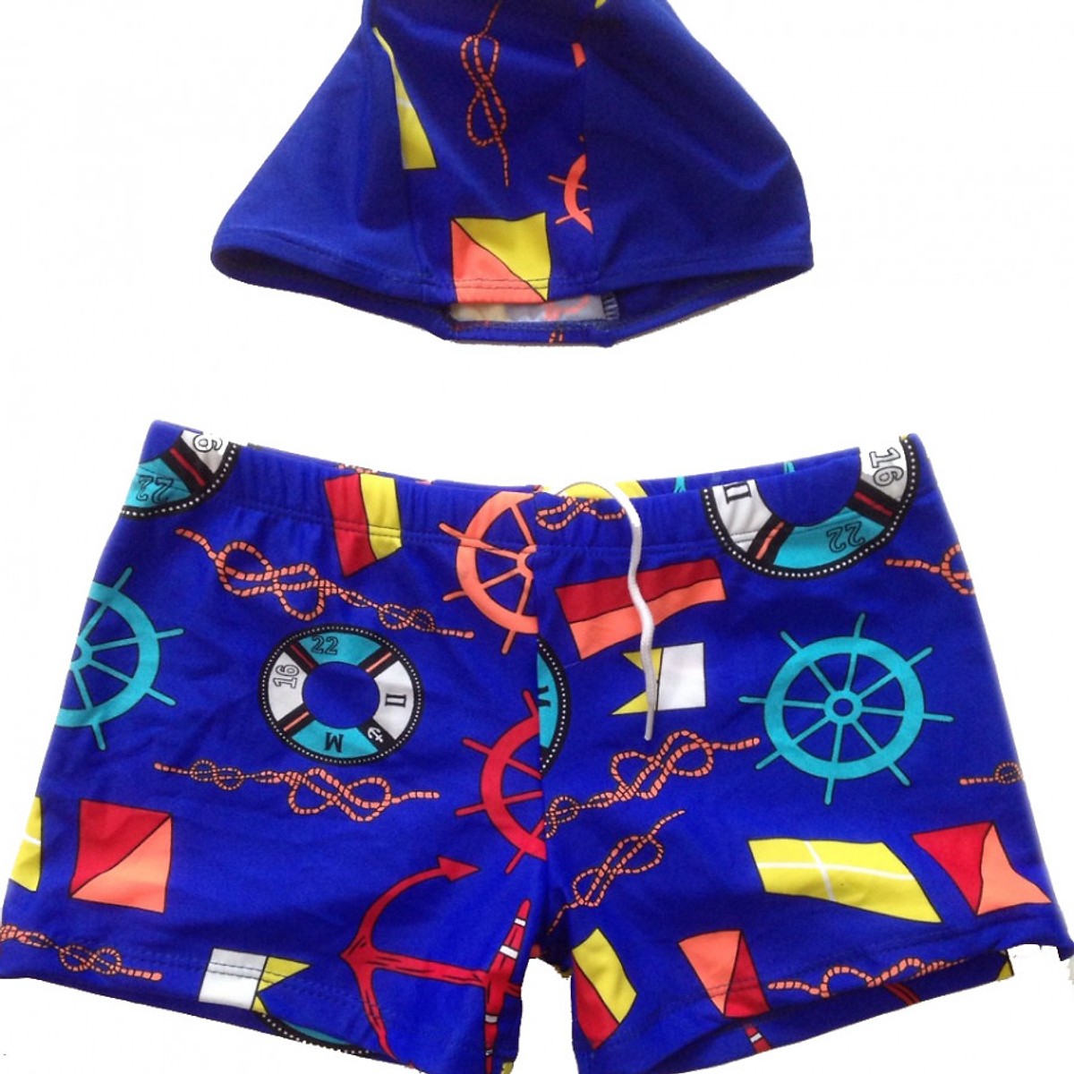 - Quần và mũ bơi cho bé được thiết kế với họa tiết là hình ảnh hoạt hình đáng yêu nổi bật trên màu nền xanh nước biển khiến bé trở nên thích thú hơn khi mặc.
