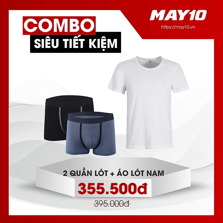 COMBO SIÊU TIẾT KIỆM 2 QUẦN LÓT NAM MAY 10 + ÁO LÓT CÓ TAY NAM MAY 10 (QUẦN + ÁO GIAO MÀU NGẪU NHIÊN)