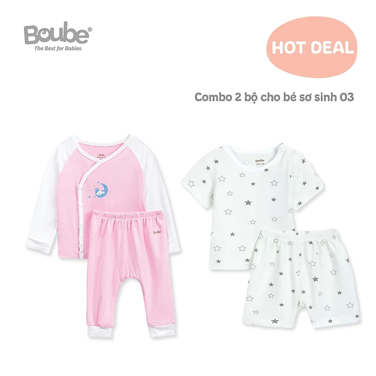 - Combo sơ sinh 03, 2 bộ quần áo dài tay và ngắn tay nhiều màu sắc cho bé sơ sinh Boube