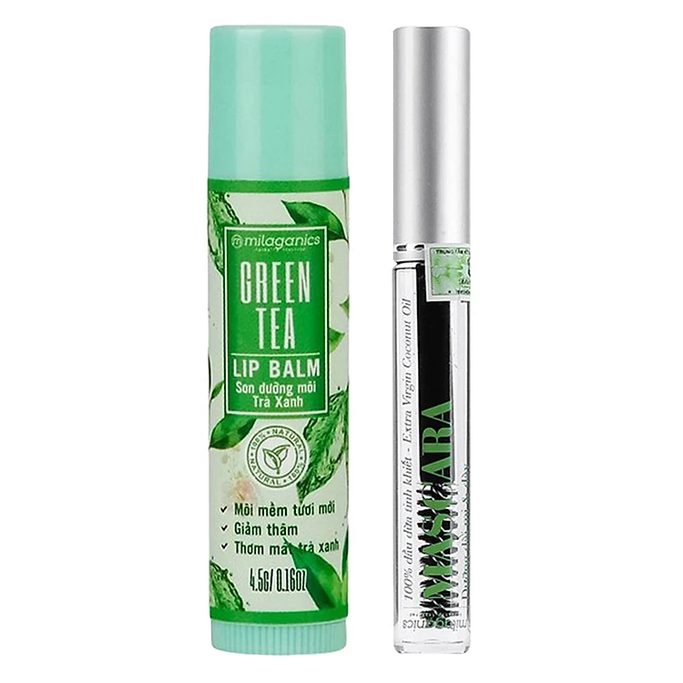Combo Son Trà Xanh Thiên Nhiên Dưỡng Môi, Giảm Thâm Milaganics (4.5g) + Mascara Dầu Dừa Dưỡng Mi Milaganics