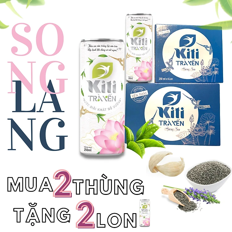 COMBO SONG LANG-Thùng 6+12 lon TRÀ YẾN HẠT CHIA KITI,Trà xanh kết hợp yến sào từ thiên nhiên vừa ngon vừa bổ giúp cải thiện sức khỏe