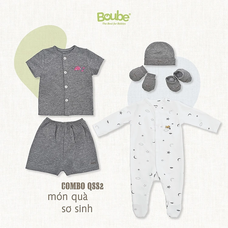 Combo SS02 quà tặng các em bé sơ sinh vừa chào đời màu sắc xinh xắn Boube, Vải cotton organic thoáng mát - Size Newborn