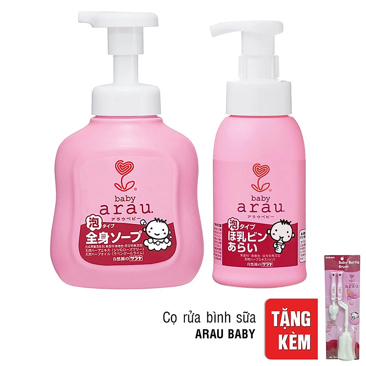 Combo Sữa Tắm Cho Bé Arau Baby Chai 450ml + Nước Rửa Bình Arau Baby 300ml - Tặng Cọ Rửa Bình Sữa