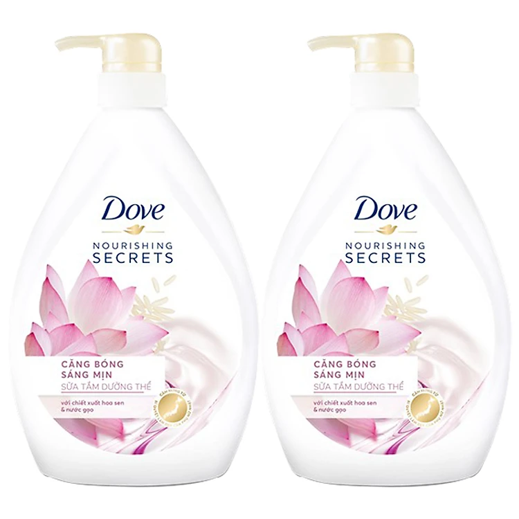 Combo Sữa tắm dưỡng thể từ thiên nhiên Dove Căng bóng sáng mịn với Chiết xuất hoa sen và nước gạo 530g x 2