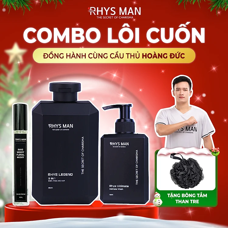 Combo sữa tắm gội nam Rhys Legend 3 in 1 & Dung dịch vệ sinh nam Ultimate & Nước hoa Rhys Man - Hàng chính hãng