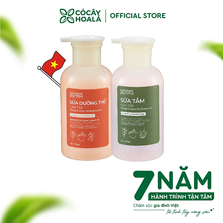 Combo Sữa Tắm Trắng Da, Sữa Dưỡng Thể Cam Trà Cỏ Cây Hoa Lá - Dưỡng Da Trắng Sáng Tự Nhiên Từ Bột Vỏ Cam - 300g