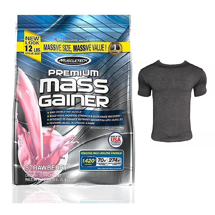 Combo Sữa tăng cân tăng cơ Premium Mass Gainer hương Strawberry (dâu) bịch lớn 5.45kg & Áo thun thể thao (size M 56-68 kg)