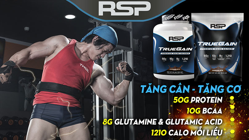 Combo Sữa tăng cân tăng cơ True Gain của RSP hương Chocolate bịch lớn 5.3kg hỗ trợ tăng cân tăng cơ nhanh cho người gầy, kén ăn, khó hấp thu & Bình lắc 600ml (Mẫu ngẫu nhiên)