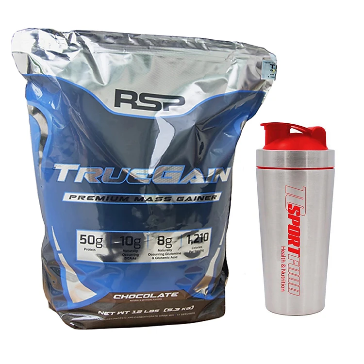 Combo Sữa tăng cân True Gain của RSP hương Chocolate bịch lớn 5.3kg hỗ trợ tăng cân tăng cơ nhanh cho người gầy, kén ăn, khó hấp thu thức ăn tự nhiên & Bình INOX 739 ml (Mẫu ngẫu nhiên)