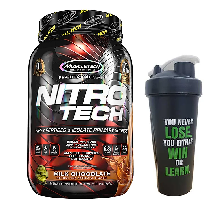 Combo Sữa tăng cơ cao cấp Whey Protein Nitro Tech của MuscleTech hương Chocolate hộp 20 lần dùng 2 LBS & Bình lắc 600 ml (Màu Ngẫu Nhiên)