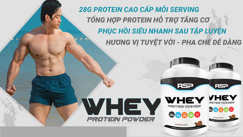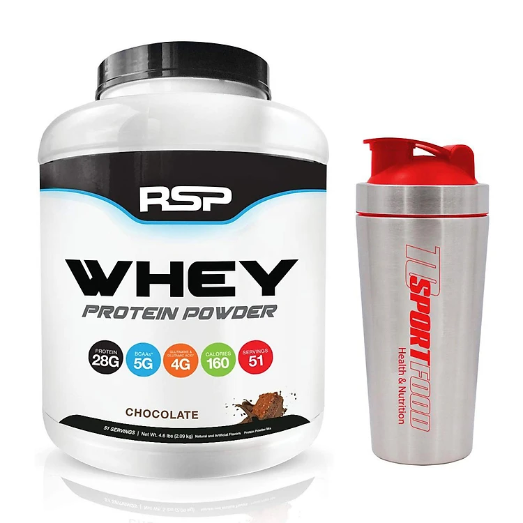 Combo Sữa tăng cơ giảm mỡ Whey Protein Powder của RSP hương Chocolate hộp 51 lần dùng hỗ trợ tăng cơ, phục hồi và phát triển cơ bắp cho người tập GYM và chơi thể thao & Bình Inox 739ML (Mẫu ngẫu nhiên)