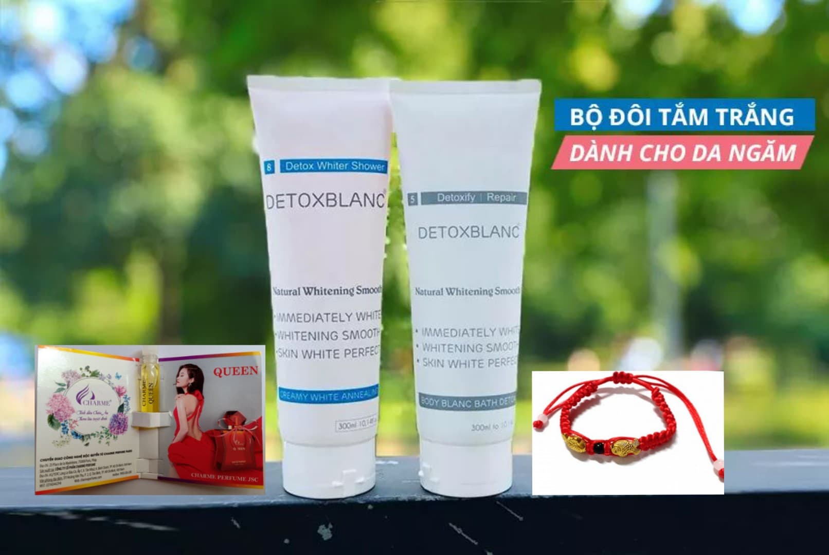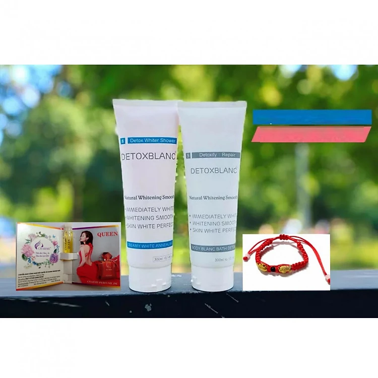 Combo Tắm trắng dành cho da ngăm Sữa Tắm Trắng Da Than Hoạt Tính Body Blanc Bath Detox và Ủ Trắng Da Toàn Thân Creami White Annealing - Detox BlanC + Tặng kèm vòng Phong THủy cưc chất + Mẫu Test nước hoa Charme Queen