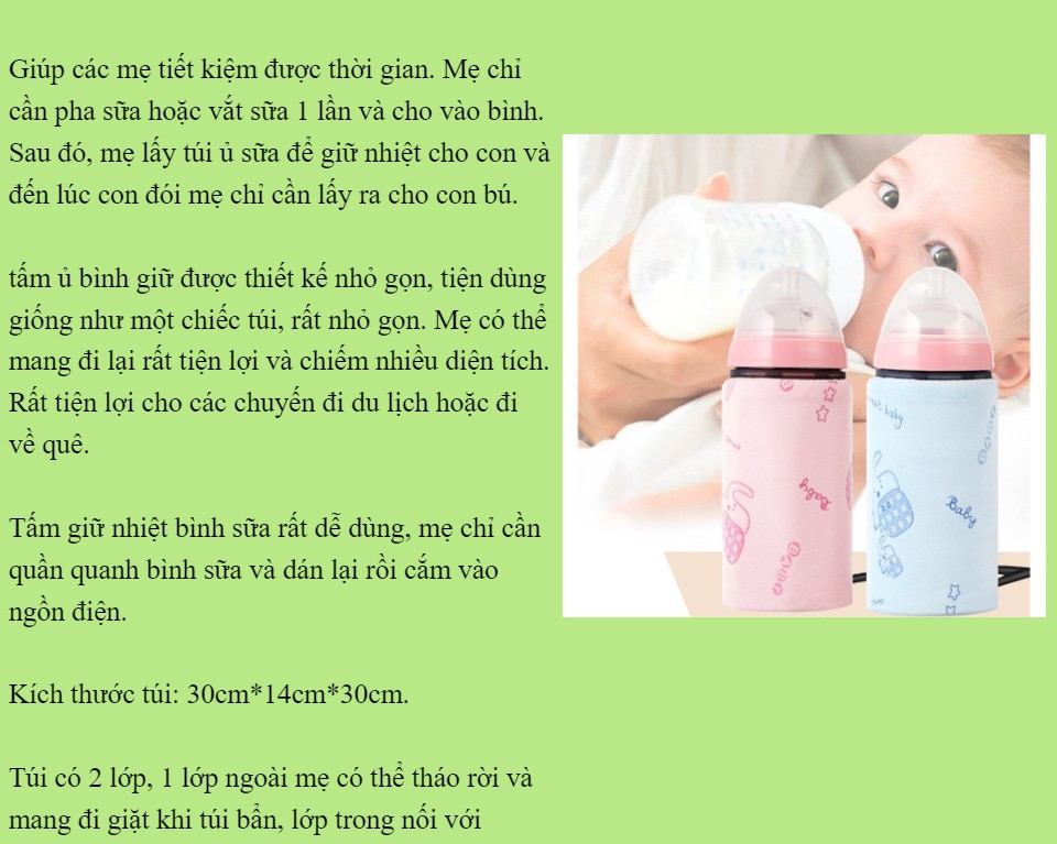 THÔNG TIN CHI TIẾT VỀ TÚI Ủ SỮA CHO BÉ.