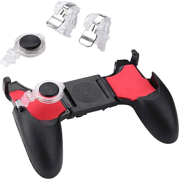 Combo tay cầm 5 trong 1 chơi game mobile Free Fire PUBG ROS làm bằng vật liệu bền Nhẹ cân, nhỏ gọn có thể gấp lại và dễ dàng lắp tay cầm vào điện thoại của bạn. Tay cầm được thiết kế chống trượt cung cấp cho bạn cảm giác tay tuyệt vời.