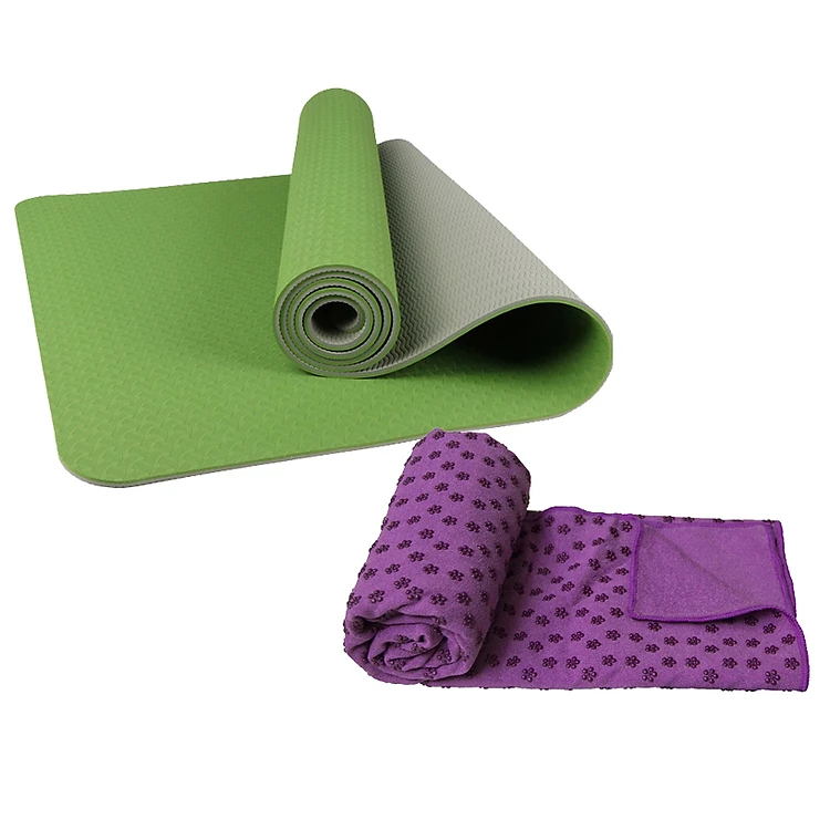 Combo Thảm tập yoga TPE 6mm 2 lớp + Khăn trải thảm hạt nổi silicon (Tặng túi đựng thảm vs dây buộc)