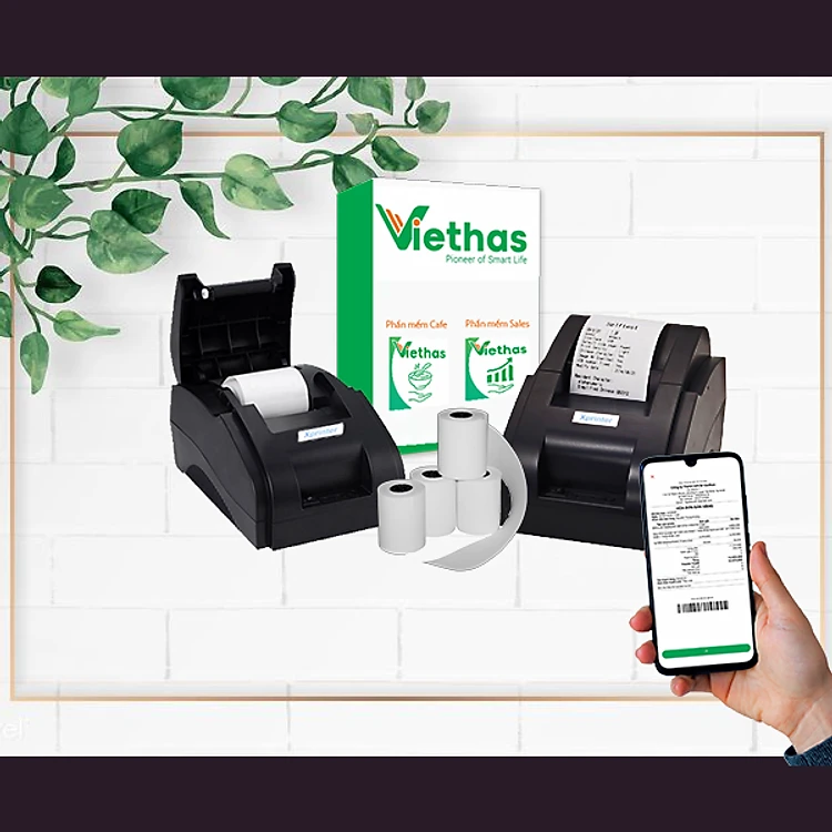 Combo Thiết bị Máy in 58iih Bluetooth + Giấy K57-45mm và phần mềm bán hàng Viethas - Hàng Chính Hãng