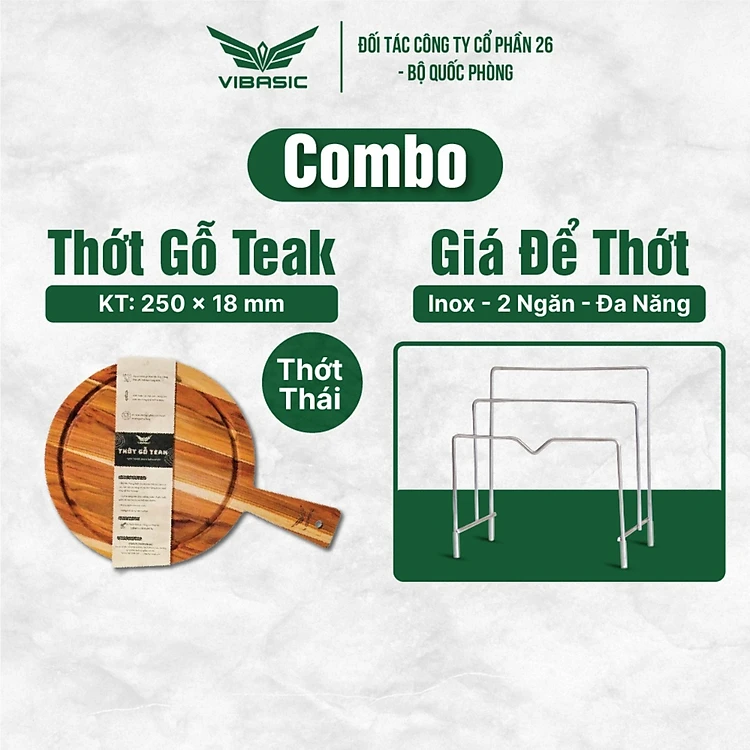 Combo Thớt Gỗ Teak và Giá Kệ Để Thớt Inox 2 ngăn - Thiết Kế Tiện Lợi