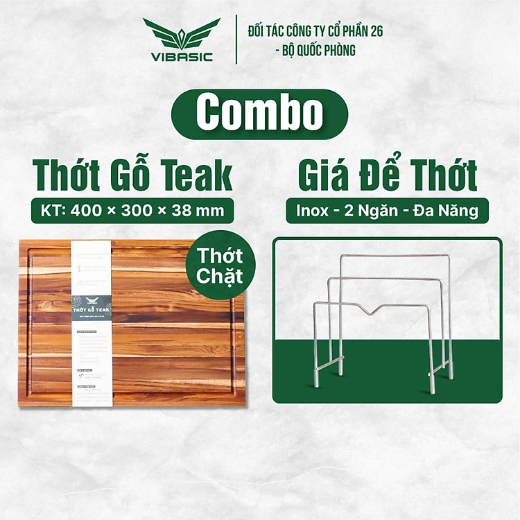 Combo Thớt Gỗ Teak và Giá Kệ Để Thớt Inox 2 ngăn - Thiết Kế Tiện Lợi